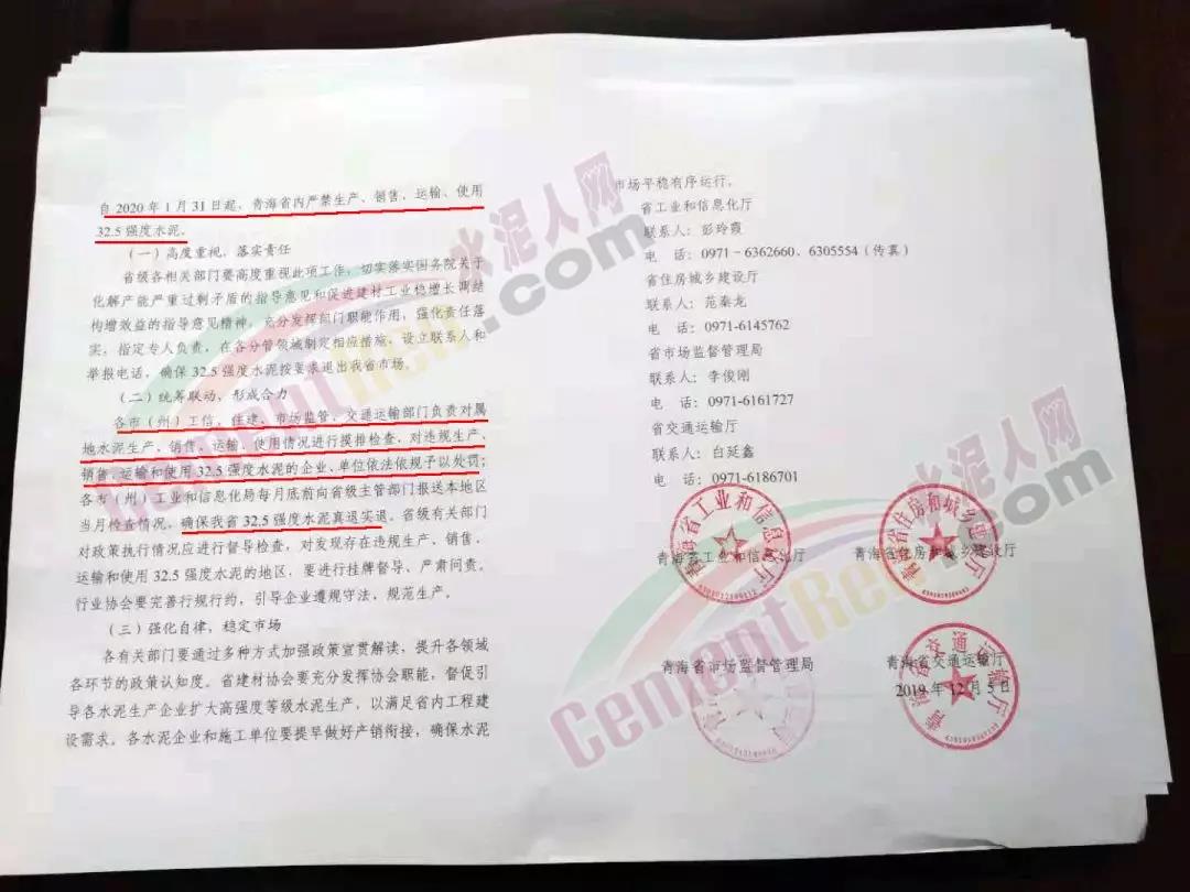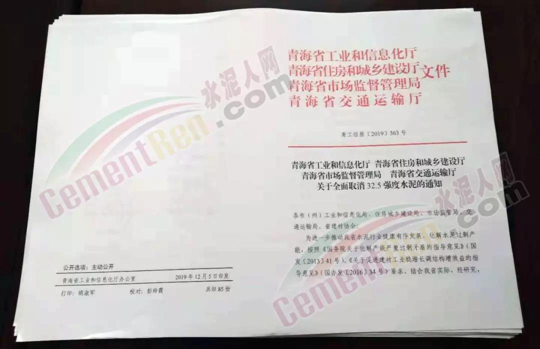為進一步推動我省水泥行業(yè)健康有序發(fā)展,化解水泥過剩產(chǎn)能,按照《國務(wù)院關(guān)于化解產(chǎn)能嚴重過剩矛盾的指導(dǎo)意見》(國發(fā)(2013]41號)、《關(guān)于促進建材工業(yè)穩(wěn)增長調(diào)結(jié)構(gòu)增效益的指導(dǎo)意見》(國辦發(fā)[2016]34號)要求,結(jié)合我省實際,經(jīng)研究,自2020年1月31日起,青海省內(nèi)嚴禁生產(chǎn)、銷售、運輸、使用32.5強度水泥。