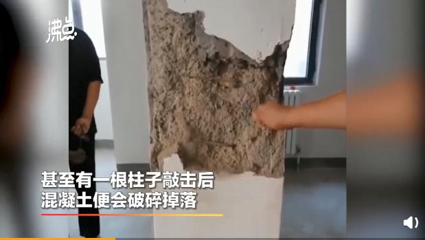 小賀莊安置房內(nèi),一敲就碎的柱子(視頻截圖)