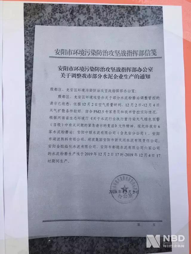 拉貨的罐車 每經(jīng)記者 張蕊 攝“之前主要從新鄉(xiāng)拉,那邊車多,有時(shí)候要等幾個(gè)小時(shí),最長(zhǎng)的時(shí)候要等十來(lái)個(gè)小時(shí)才能拉上一車。”司機(jī)說(shuō),正常好裝好卸的時(shí)候一天能拉兩三車,排隊(duì)的時(shí)候就只能一天一車,不過(guò)因?yàn)樵谶\(yùn)輸公司是固定工資,薪水沒(méi)什么變化,私家貨車的費(fèi)用應(yīng)該漲了不少。“往年也漲,但今年的價(jià)格是創(chuàng)了歷史。”臨化水泥廠前述人士感嘆道,不過(guò)目前安陽(yáng)的水泥價(jià)格已經(jīng)回落了兩三次,P.O42.5級(jí)別的出廠價(jià)已經(jīng)由每噸580~600元回落到520~530元左右,但離正常的450元/噸還有一段距離。“這輪漲價(jià)是鄭州、新鄉(xiāng)等地先漲,拉貨的罐車就過(guò)來(lái)這邊,帶動(dòng)安陽(yáng)也出現(xiàn)漲價(jià),價(jià)格回落一般也是鄭州等地先落,安陽(yáng)再跟著降。”他表示,回落主要是因?yàn)槎焖獌龊蠊さ厥┕p少,水泥用量也隨之減少。另外在原材料價(jià)格太高的情況下,小工地往往就不干了。記者在調(diào)查過(guò)程中發(fā)現(xiàn),河南相關(guān)部門(mén)在污染治理方面明顯加大了力度,尤其對(duì)達(dá)標(biāo)排放加大了管控。諸如水泥廠、鋼鐵廠、冶金廠之類的工廠,都在醒目位置掛著“2019~2020年重污染天氣應(yīng)急管控公示牌”,明確三級(jí)預(yù)警期間該廠的應(yīng)急管控措施,并列明對(duì)應(yīng)的負(fù)責(zé)人。鵬迪水泥廠一名工作人員告訴記者,12月4日上午廠里迎接了水冶鎮(zhèn)、殷都區(qū)、安陽(yáng)市等四輪環(huán)保檢查。當(dāng)?shù)貙?duì)環(huán)保的重視由此可見(jiàn)一斑。“我們11月份就正常生產(chǎn)了5天,一共生產(chǎn)了五六千噸水泥,每天限量銷售兩三百噸,保證固定的客戶有貨。”這名工作人員表示。近年來(lái),安陽(yáng)市陸續(xù)下發(fā)了《安陽(yáng)市藍(lán)天保衛(wèi)戰(zhàn)三年行動(dòng)計(jì)劃(2018~2020)》、大氣污染防治攻堅(jiān)戰(zhàn)實(shí)施方案和秋冬季大氣污染攻堅(jiān)行動(dòng)等一系列工作方案,這也換來(lái)了當(dāng)?shù)乜諝赓|(zhì)量持續(xù)改善。在從安陽(yáng)市區(qū)到水冶鎮(zhèn)的出租車上,司機(jī)笑說(shuō),“安陽(yáng)往年入冬后很難見(jiàn)到太陽(yáng),天都是灰蒙蒙的。最近兩年治理空氣污染明顯下的力度很大。你看,進(jìn)入12月份了還能看見(jiàn)藍(lán)天白云,這在早幾年很難想象。”