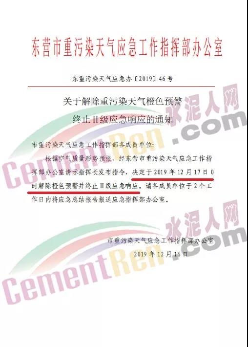 12月16日,山東省東營市重污染天氣工作應(yīng)急指揮部辦公室發(fā)布了《關(guān)于解除重污染天氣橙色預(yù)警終止二級應(yīng)急響應(yīng)的通知》稱,根據(jù)空氣質(zhì)量形勢預(yù)報(bào),經(jīng)東營市重污染天氣應(yīng)急工作指揮部辦公室請示指揮長發(fā)布指令,決定于 2019 年 12 月 17 日 0時(shí)解除橙色預(yù)警并終止Ⅱ級應(yīng)急響應(yīng)。