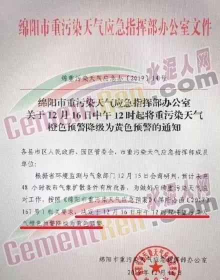 同期,四川綿陽市重污染天氣應(yīng)急指揮部辦公室發(fā)布了《關(guān)于12月16日中午12時(shí)起將重污染天氣橙色預(yù)警降級為黃色預(yù)警的通知》稱,根據(jù)省環(huán)境監(jiān)測與氣象部門12月15日會(huì)商研判,預(yù)計(jì)未來48小時(shí)綿陽市氣象擴(kuò)散條件有所改善,為做好后續(xù)重污染天氣應(yīng)對工作,按照《綿陽市重污染天氣應(yīng)急預(yù)案》相關(guān)要求,綿陽市決定于12月16日中午12時(shí)起將重污染天氣橙色預(yù)警降級為黃色預(yù)警。