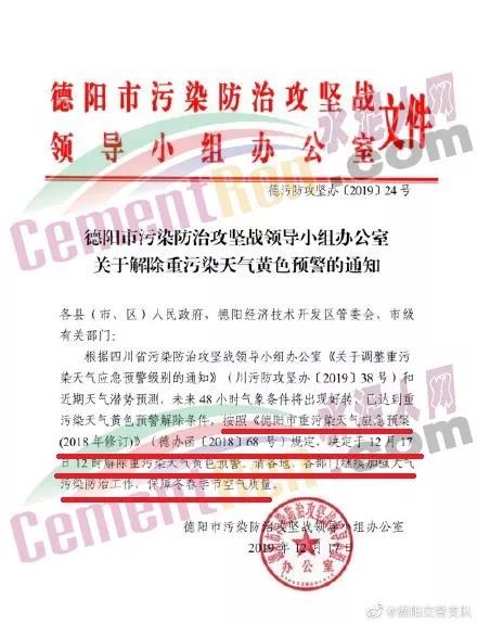 12月17日德陽市污染防治攻堅戰(zhàn)領(lǐng)導(dǎo)小組辦公室發(fā)布了《關(guān)于解除重污染天氣黃色預(yù)警的通知》稱,根據(jù)四川省污染防治攻堅戰(zhàn)領(lǐng)導(dǎo)小組辦公室《關(guān)于調(diào)整重污染天氣應(yīng)急預(yù)警級別的通知》(川污防攻堅辦〔2019〕38 號)和近期天氣潛勢預(yù)測,未來 48 小時氣象條件將出現(xiàn)好轉(zhuǎn),已達(dá)到重污染天氣黃色預(yù)警解除條件,按照《德陽市重污染天氣應(yīng)急預(yù)案(2018 年修訂)》(德辦函〔2018〕68 號)規(guī)定,決定于 12 月 17日 12 時解除重污染天氣黃色預(yù)警。