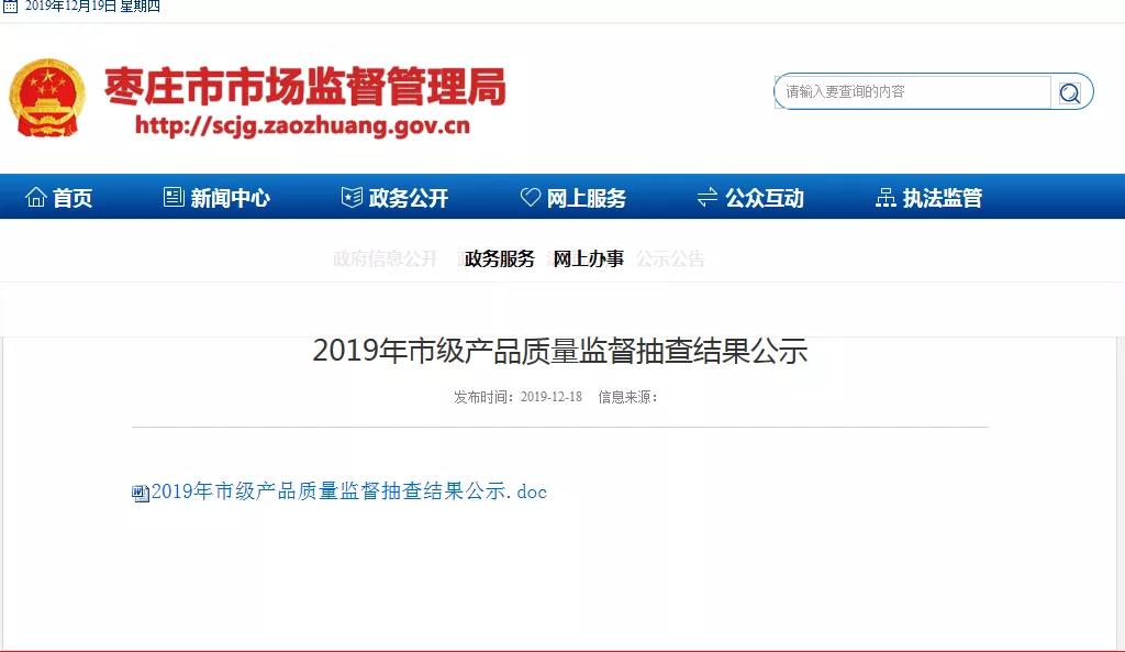 近日,棗莊市市場監(jiān)督管理局公布了2019年市級產(chǎn)品質(zhì)量監(jiān)督抽查結(jié)果。