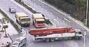 今年4月10日中午12點53分,珠海一司機在南屏南琴路掉頭,被兩巨無霸猛撞。