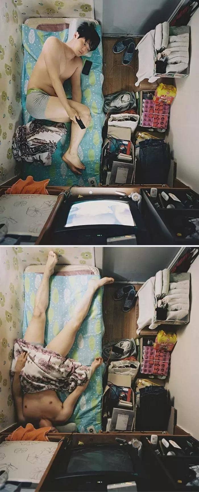 你見過凌晨1點的廉價群租房嗎?韓國有位攝影師,為了記錄底層人民的生活,在廉租房生活了3年。他說,生活在那里的人,都很壓抑。房間里,通常有一張床,一張桌子,和一個壁櫥。1米的小床,已經(jīng)占了近一半的空間,卻讓人連腿也無法伸直。