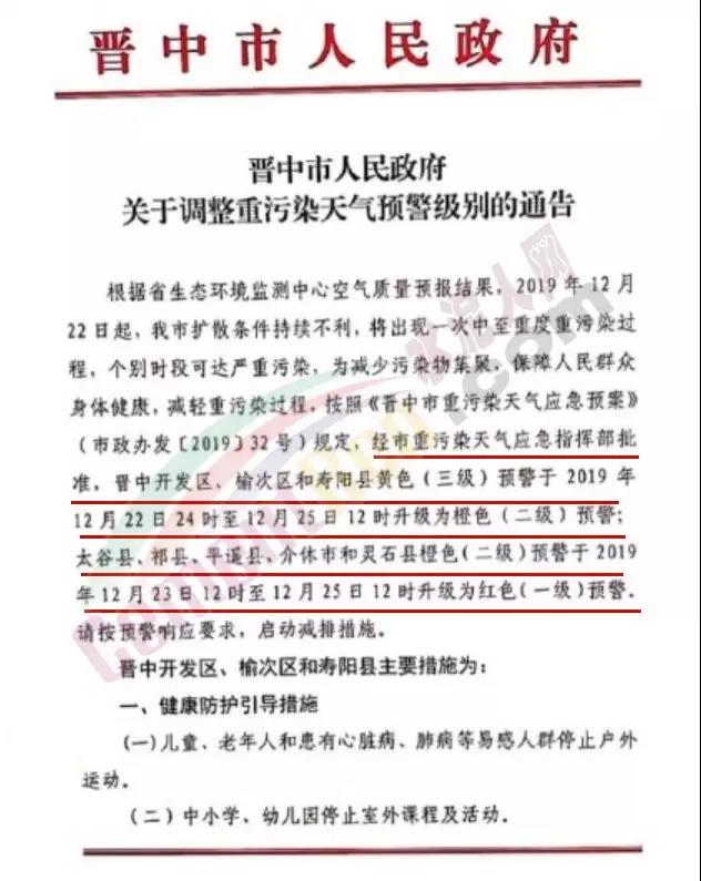 22日,晉中市人民政府通知調(diào)整重污染天氣預(yù)警級別為橙色。