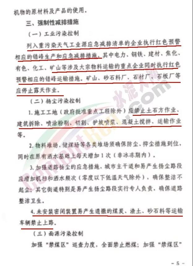 日前,唐山市人民政府發(fā)布《關(guān)于啟動重污染天氣Ⅱ級應(yīng)急響應(yīng)的通知》稱將于今日(12月23日)12時起全市啟動重污染天氣Ⅱ級應(yīng)急響應(yīng),解除時間另行通知。要求水泥行業(yè)企業(yè)嚴(yán)格按照《重污染天氣應(yīng)急工業(yè)源污染物減排清單》中“橙色預(yù)警減排措施”執(zhí)行。礦山、沙石料廠、石材廠、石板廠等停止露天作業(yè);施工工地停止土石方作業(yè)、建筑拆除、噴涂粉刷、護(hù)坡噴漿、混凝土攪拌等;未安裝密閉裝置易產(chǎn)生遺撒的煤炭、渣土、砂石料等運(yùn)輸車輛停止上路。詳情如下: