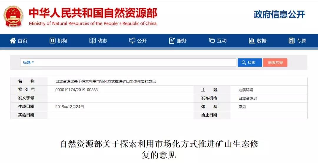 日前,自然資源部發(fā)布《關(guān)于探索利用市場(chǎng)化方式推進(jìn)礦山生態(tài)修復(fù)的意見》(以下簡(jiǎn)稱“《意見》”)稱,為解決礦山生態(tài)修復(fù)歷史欠賬多、現(xiàn)實(shí)矛盾多、投入不足等突出問題,按照黨的十九大“構(gòu)建政府為主導(dǎo)、企業(yè)為主體、社會(huì)組織和公眾共同參與的環(huán)境治理體系”的要求,堅(jiān)持“誰(shuí)破壞、誰(shuí)治理”“誰(shuí)修復(fù)、誰(shuí)受益”原則,通過(guò)政策激勵(lì),吸引各方投入,推行市場(chǎng)化運(yùn)作、科學(xué)化治理的模式,加快推進(jìn)礦山生態(tài)修復(fù),制定本意見。
