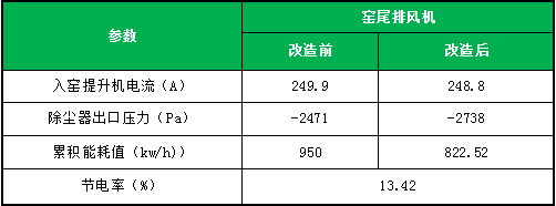 循環(huán)風機改造前后數(shù)據(jù)對比