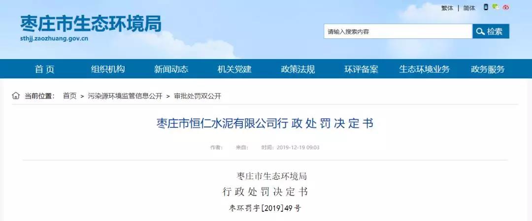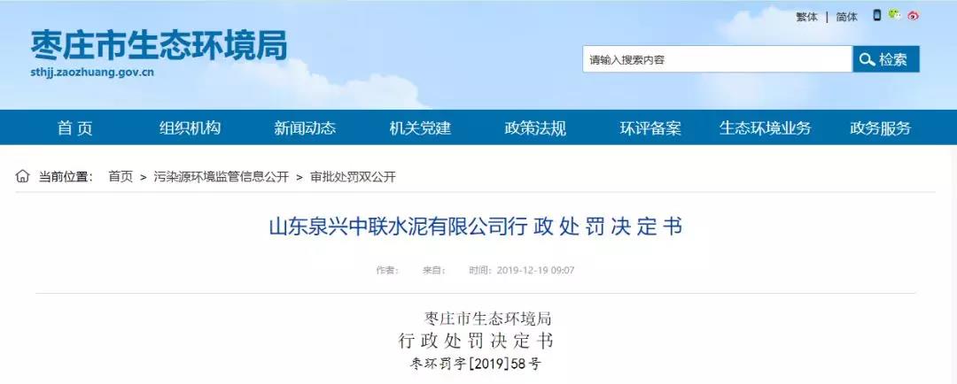 日前,棗莊市生態(tài)環(huán)境局發(fā)布了多份行政處罰決定書,其中有山東泉興中聯(lián)水泥有限公司、棗莊市恒仁水泥有限公司、棗莊市華奧商品混凝土有限公司等8家企業(yè)因環(huán)境污染被處罰,累計罰款共81.5萬元。