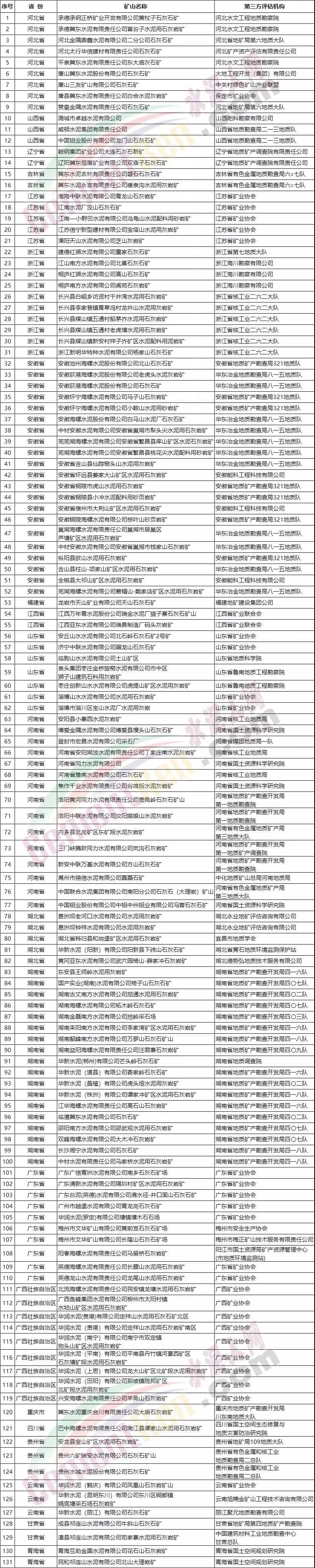 公示名單中包括海螺水泥、中聯(lián)水泥、南方水泥、中材水泥、天山水泥、祁連山水泥、華新水泥、華潤(rùn)水泥、金隅冀東、山水水泥、紅獅水泥、金圓水泥等水泥集團(tuán)企業(yè)所屬礦山,其中石灰石礦山共132家,涉及區(qū)域包括河北省、山西省、吉林省、江蘇省、安徽省、福建省、江西省、山東省、湖南省、廣西壯族自治區(qū)、重慶市、四川省、貴州省、云南省、甘肅省、青海省等16個(gè)省自治區(qū)。