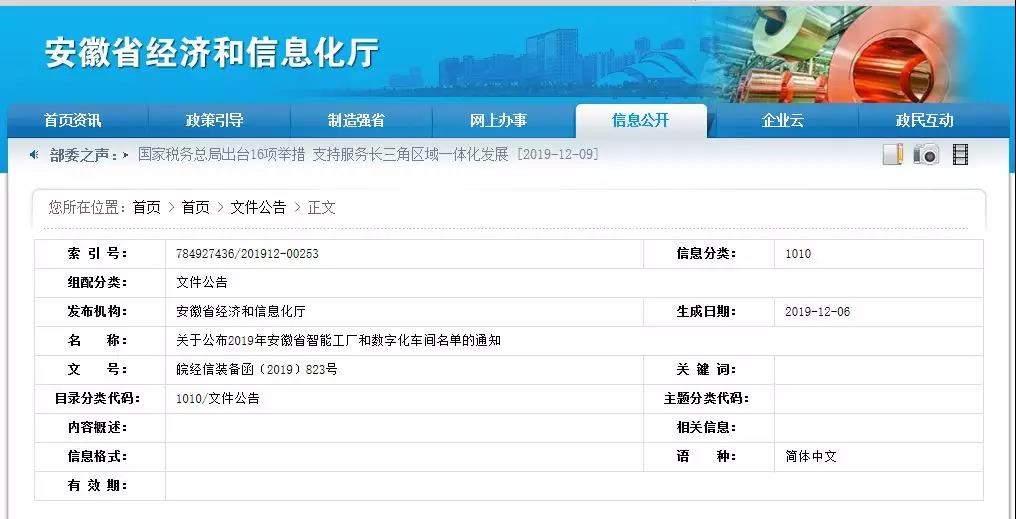 皖經(jīng)信裝備函〔2019〕823號