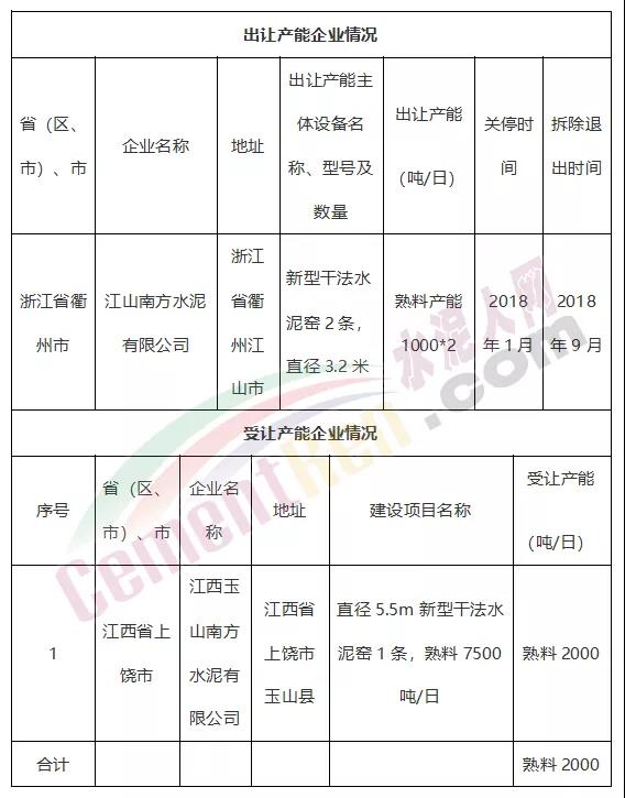 江山南方水泥有限公司申請(qǐng)撤銷2條日產(chǎn)1000噸新型干法水泥生產(chǎn)線熟料產(chǎn)能出讓確認(rèn),經(jīng)復(fù)核,撤銷申請(qǐng)符合《浙江省水泥玻璃行業(yè)產(chǎn)能置換實(shí)施細(xì)則(浙經(jīng)信建冶煤〔2018〕230號(hào))第十二條規(guī)定,現(xiàn)予以公告。