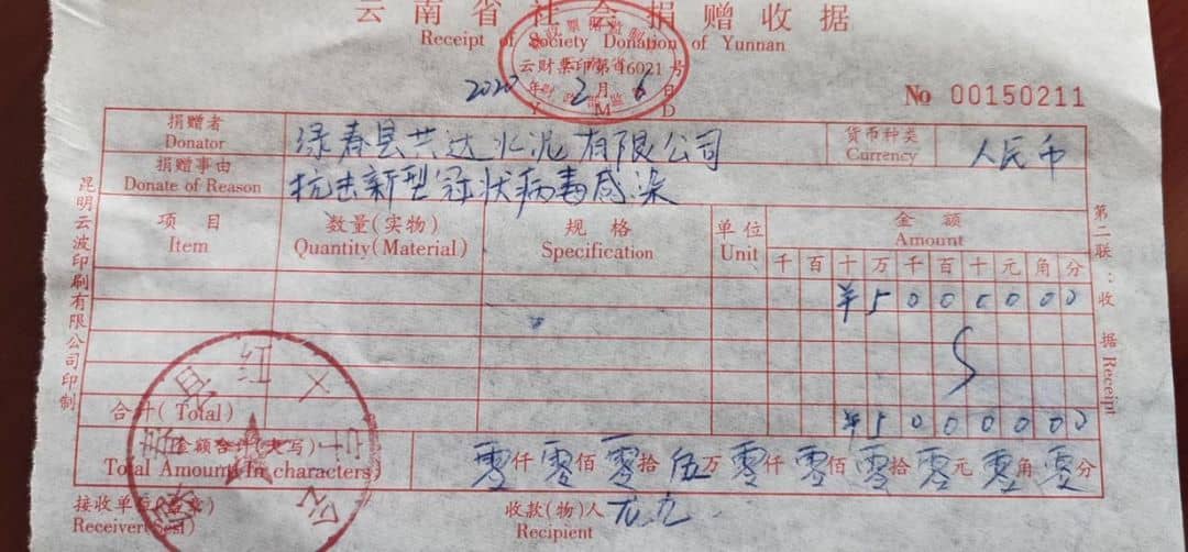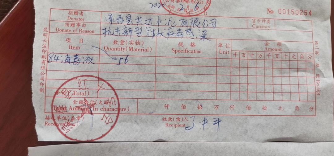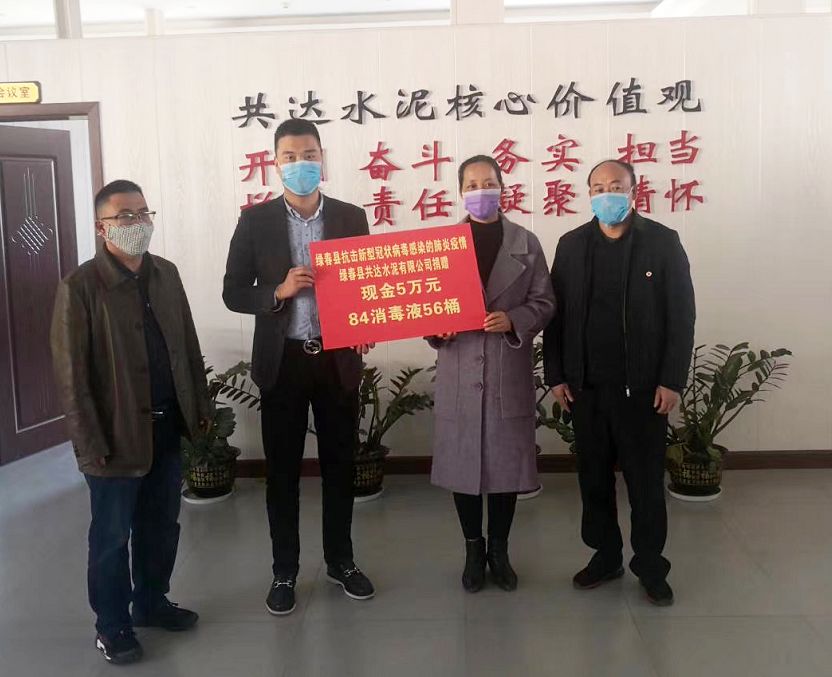 日前,位于云南省紅河州綠春縣的共達水泥,向當?shù)丶t十字會捐贈消毒液56桶,現(xiàn)金5萬元。企業(yè)負責人金總表示:所有企業(yè)及個人行動起來,盡自己所能,一定能打贏這場無硝煙的戰(zhàn)爭。
