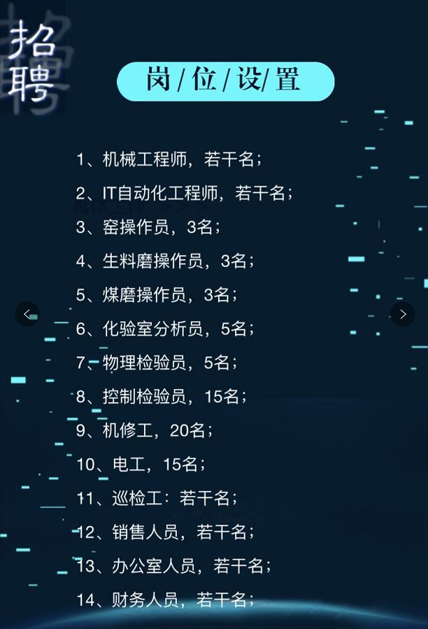 目前,云南綠春共達水泥正在招聘水泥生產(chǎn)相關(guān)各工藝工段技術(shù)人員、行政人員等。歡迎有識之士加入我們!!