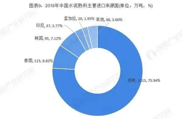 據(jù)不完全統(tǒng)計2019年前10個月,我國共進(jìn)口了水泥熟料1650萬噸,其中有約65%來自于越南。除了越南以外,其余部分多來自韓國、泰國、印尼、阿聯(lián)酋、日本等國。
