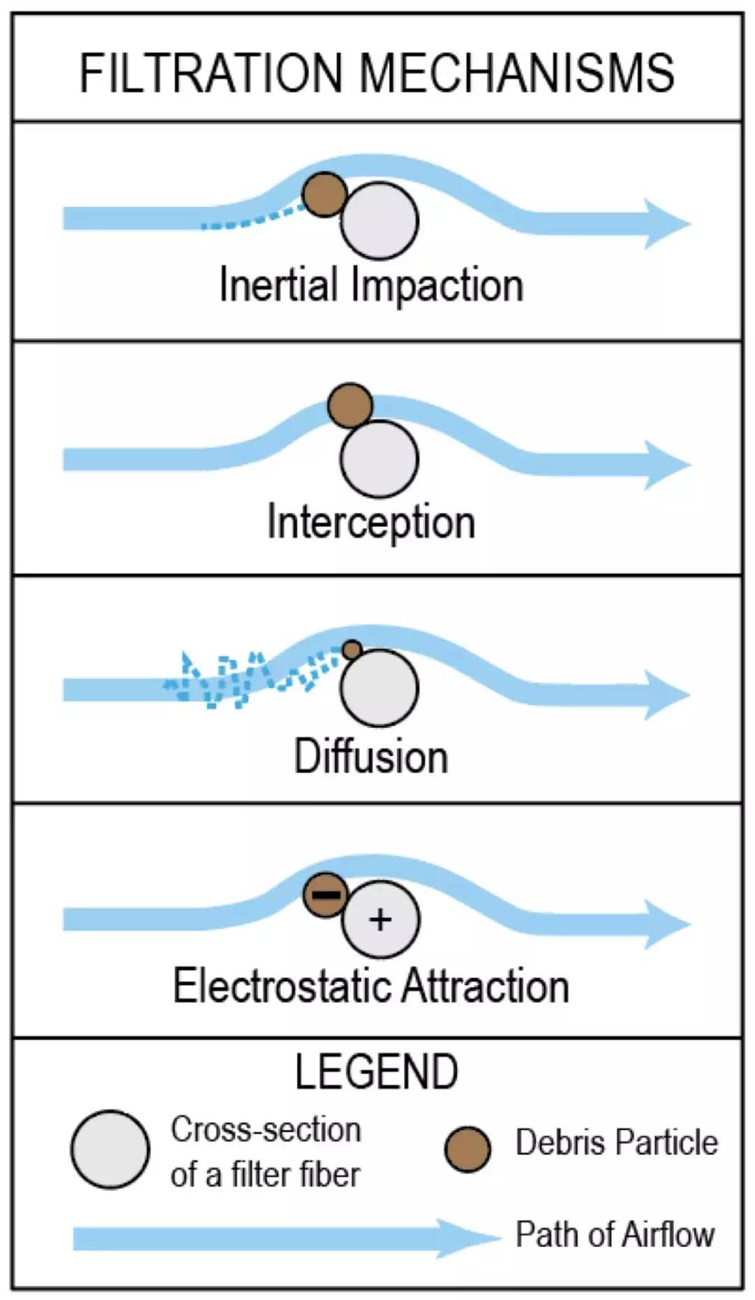 看到圖片你們是不是會(huì)擔(dān)憂,熔噴布空隙這么大,是怎么過(guò)濾環(huán)境中的病毒的呢?雖然新型冠狀病毒尺寸很小,在 100 納米(0.1微米)左右,但是病毒無(wú)法獨(dú)立存在,其傳播途徑主要有分泌物和打噴嚏時(shí)的飛沫,飛沫的大小在 5 微米左右,這是其一,第二,熔噴布本質(zhì)上是一種纖維過(guò)濾器,含有病毒的飛沫靠近熔噴布后,也會(huì)被靜電吸附在表面,無(wú)法透過(guò)。