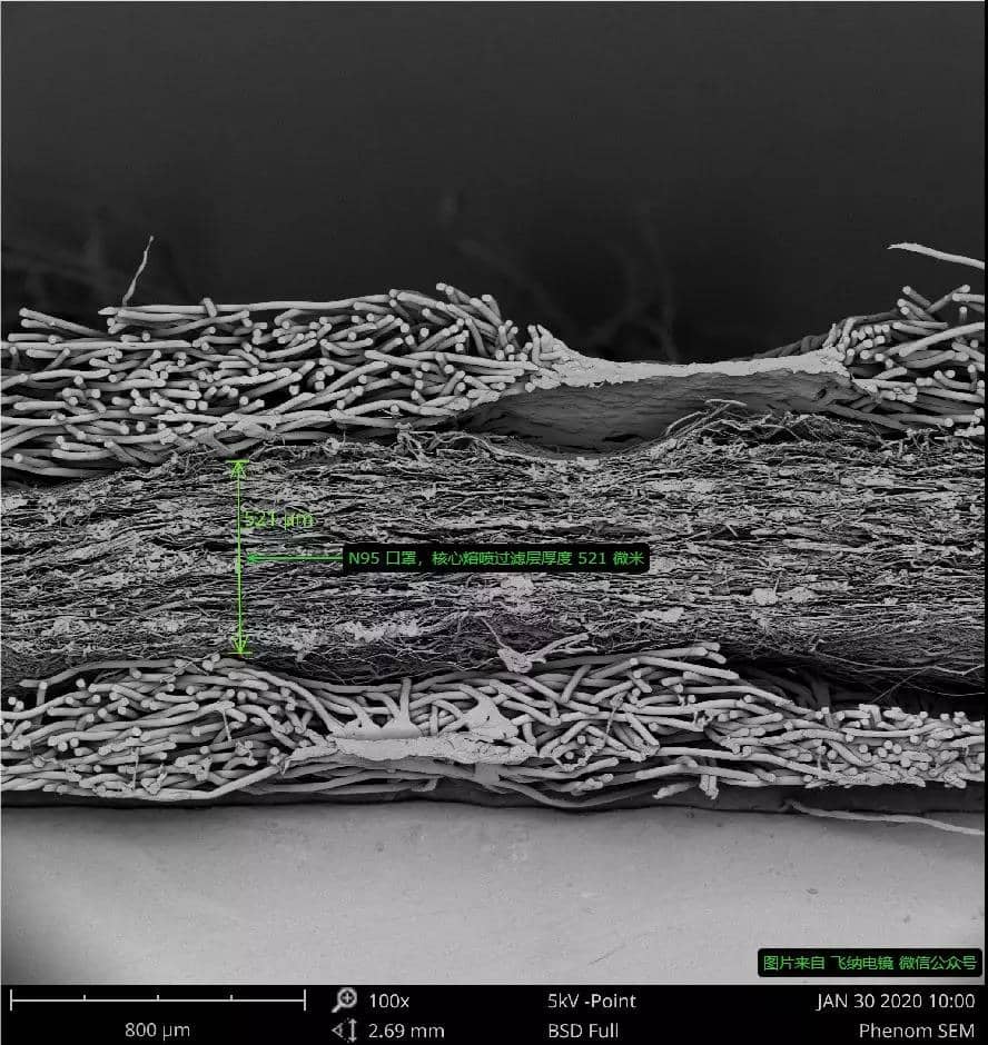 N95 口罩截面圖,飛納臺(tái)式掃描電鏡拍攝