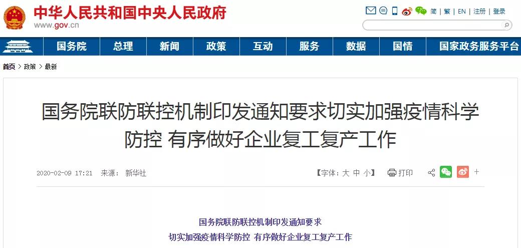 2月8日,國務(wù)院應(yīng)對(duì)新型冠狀病毒感染肺炎(以下簡(jiǎn)稱“新冠肺炎”)疫情聯(lián)防聯(lián)控機(jī)制印發(fā)《關(guān)于切實(shí)加強(qiáng)疫情科學(xué)防控 有序做好企業(yè)復(fù)工復(fù)產(chǎn)工作的通知》(以下簡(jiǎn)稱《通知》)。