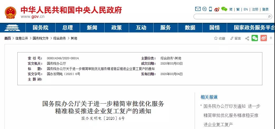 3月3日,國務(wù)院辦公廳緊急發(fā)文,《關(guān)于進(jìn)一步精簡(jiǎn)審批優(yōu)化服務(wù)精準(zhǔn)穩(wěn)妥推進(jìn)企業(yè)復(fù)工復(fù)產(chǎn)的通知》,要求低風(fēng)險(xiǎn)地區(qū)不得采取審批、備案等方式延緩開工。對(duì)于中、高風(fēng)險(xiǎn)兩類地區(qū),各省(自治區(qū)、直轄市)政府要在滿足疫情防控要求的基礎(chǔ)上,按照最少、必需原則分別制定公布全省統(tǒng)一的復(fù)工復(fù)產(chǎn)條件,對(duì)確有必要的審批和證明事項(xiàng)實(shí)行清單管理,逐項(xiàng)列明辦理程序、材料和時(shí)限,清單之外一律不得實(shí)施審批或索要證明,防止出現(xiàn)層層加碼、互為前置審批、循環(huán)證明等現(xiàn)象。嚴(yán)禁向企業(yè)收取復(fù)工復(fù)產(chǎn)保證金等。對(duì)重點(diǎn)行業(yè)企業(yè)復(fù)工復(fù)產(chǎn)可設(shè)置審批綠色通道,加快提高復(fù)工復(fù)產(chǎn)率。