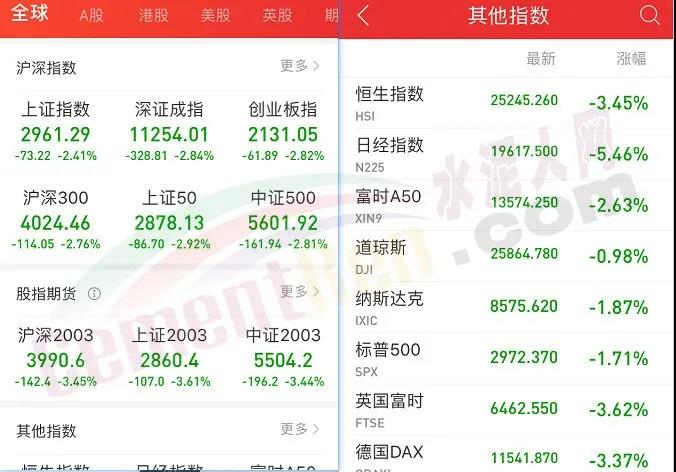 國際油價(jià)雪崩,導(dǎo)致全球避險(xiǎn)情緒再次升溫,美國三大股指期貨開盤后,跌幅不斷擴(kuò)大。截至發(fā)稿,道瓊斯指數(shù)期貨跌4.74%,標(biāo)普500指數(shù)期貨跌4.90%,納指期貨跌4.82%,全球主要股指集體大跌。