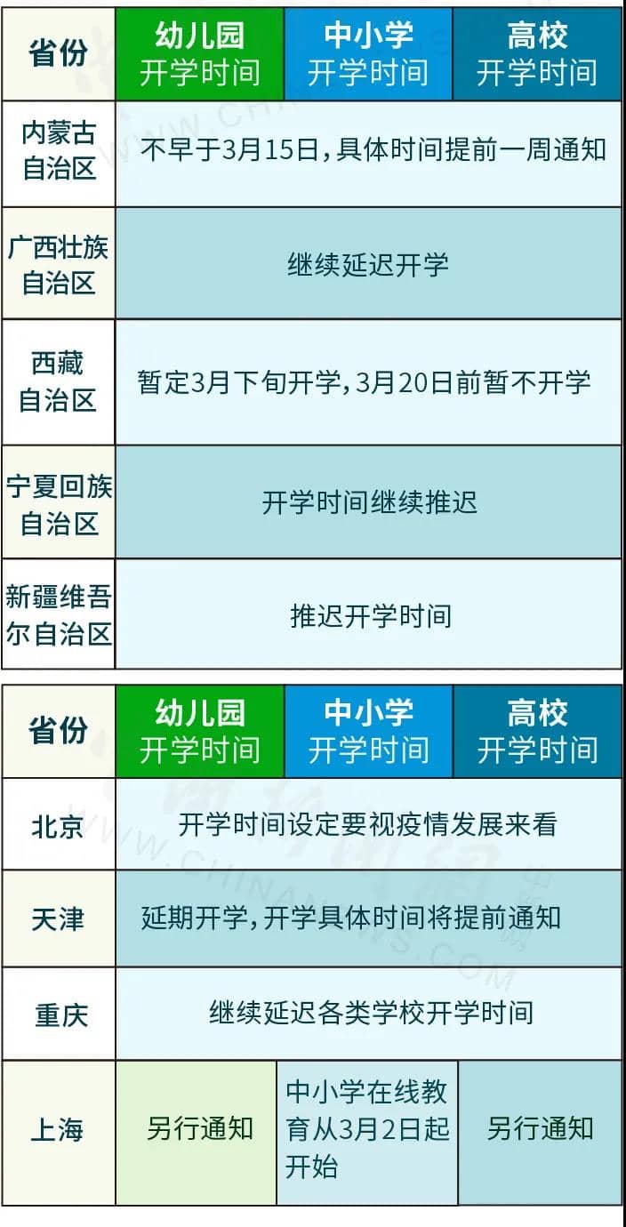 例如,2月27日,貴州省委、省政府研究確定:該省高三年級和初三年級學(xué)生3月16日正式開學(xué),其他學(xué)段、高中初中其他年級開學(xué)時間將視下一階段疫情防控情況,經(jīng)科學(xué)評估后再行確定并向社會公布。