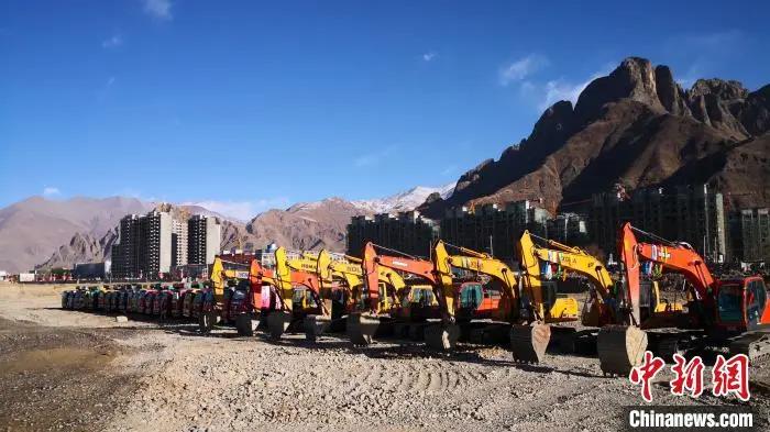 圖為3月15日,拉薩城投堆龍新城項(xiàng)目施工現(xiàn)場(chǎng)。當(dāng)日,西藏拉薩全面啟動(dòng)全市重點(diǎn)項(xiàng)目和穩(wěn)投資工作。拉薩城投堆龍新城項(xiàng)目部 供圖