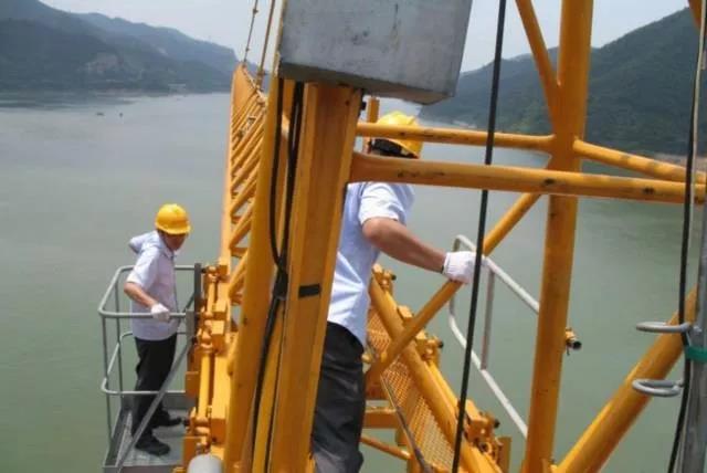 8、上塔吊大臂檢測時檢測人員自身安全問題: