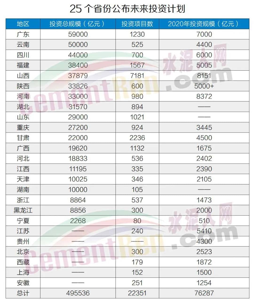 據(jù)不完全統(tǒng)計發(fā)現(xiàn),截至3月10日,有25個省區(qū)市公布了未來的投資規(guī)劃,2.2萬個項目總投資額達49.6萬億元,其中2020年度計劃投資總規(guī)模7.6萬億元。