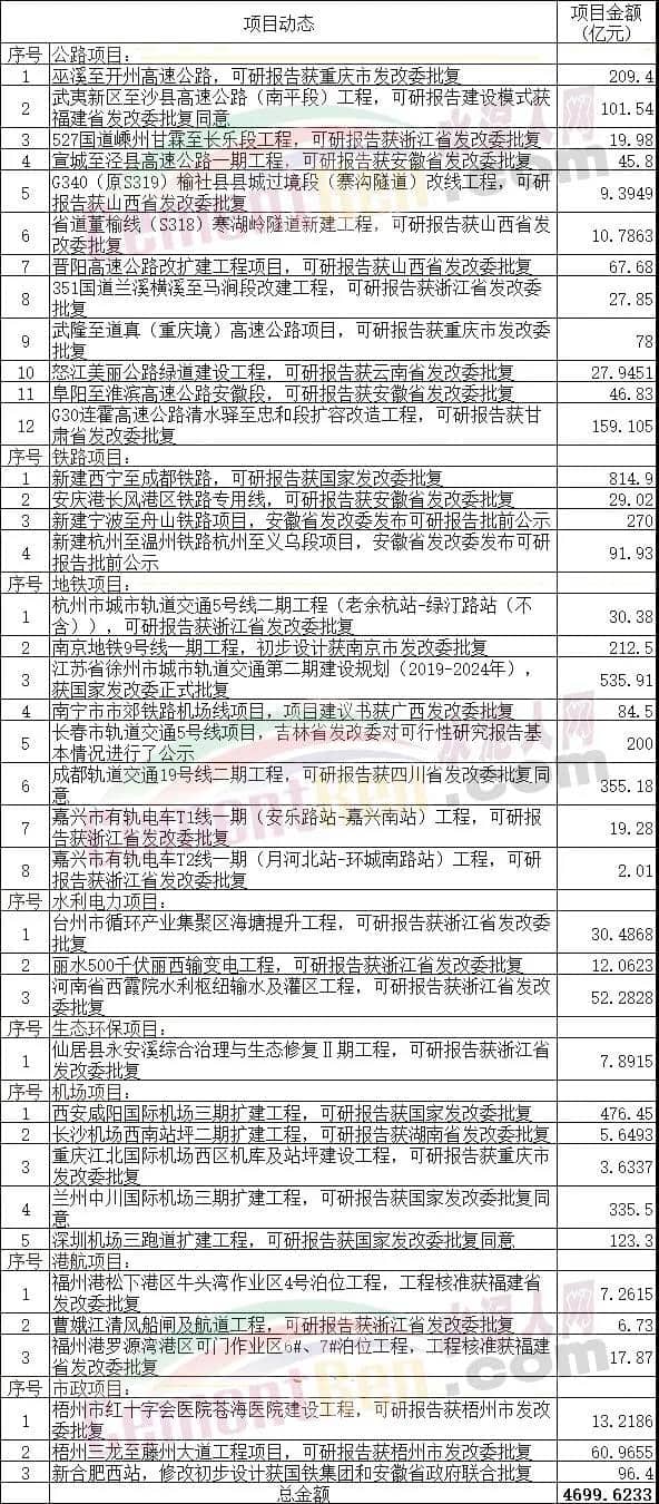 據(jù)統(tǒng)計,今年前兩個月,國家及省市級發(fā)改委共批復了約 39 項重大工程項目的可行性研究報告或項目合核準建議書等,總項目投資額近 4700 億元。其中,交通基建類項目總投資額近4427億元。