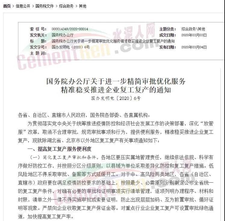 3月初,國務院辦公廳發(fā)布《關于進一步精簡審批優(yōu)化服務精準穩(wěn)妥推進企業(yè)復工復產的通知》(國辦發(fā)明電〔2020〕6號)為貫徹落實黨中央關于統(tǒng)籌推進疫情防控和經濟社會發(fā)展工作的決策部署,深化“放管服”改革,取消不合理審批,規(guī)范審批事項和行為,提供便利服務,精準穩(wěn)妥推進企業(yè)復工復產,全國工地建設復工將全面鋪開,各省市不得設置障礙阻止復工。