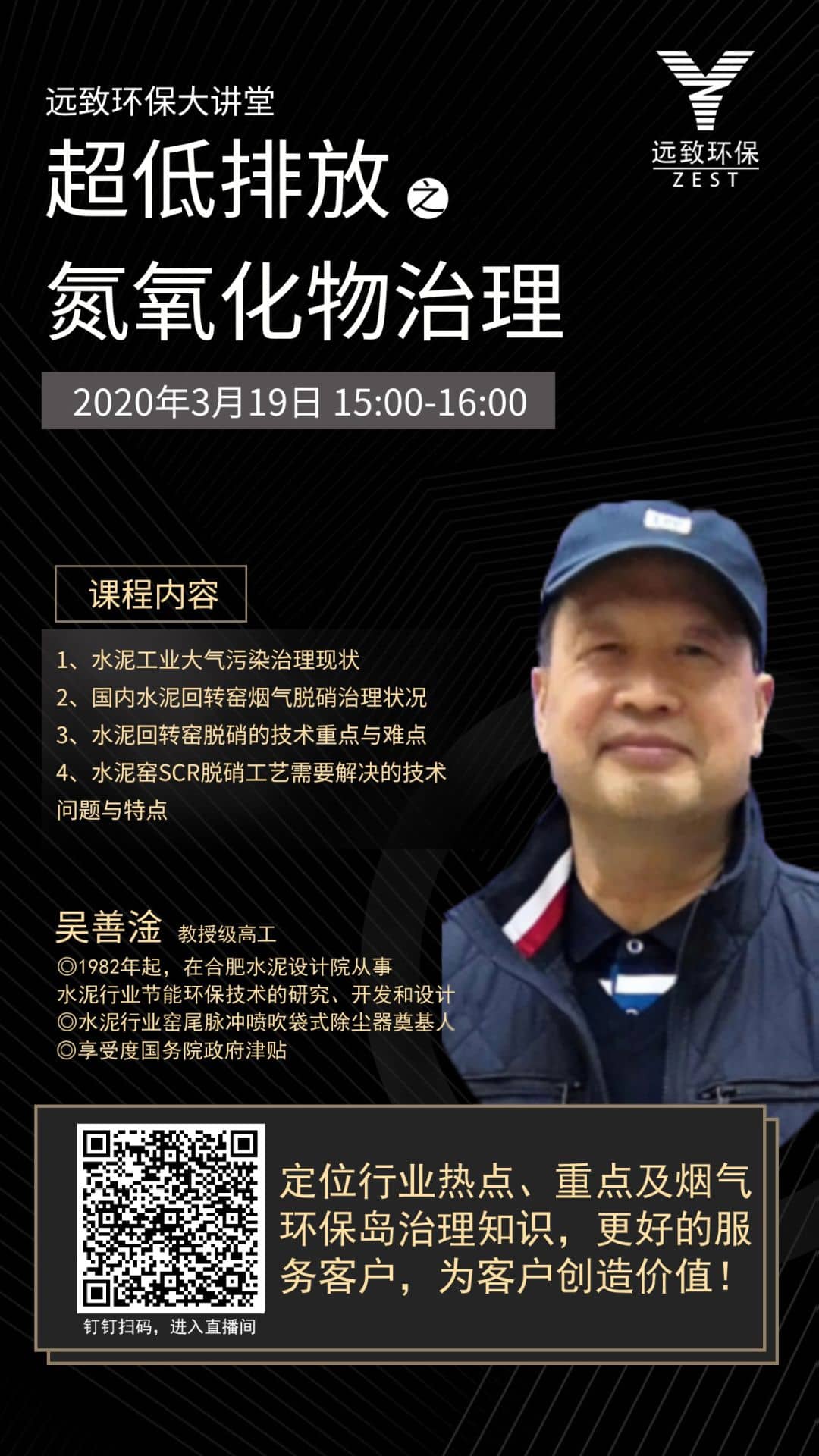為了讓更多的業(yè)內(nèi)人士全面的了解水泥工業(yè)大氣污染治,遠(yuǎn)致環(huán)保大講堂第一期課程,邀請(qǐng)水泥行業(yè)專(zhuān)家——窯尾脈沖噴突袋式除塵器奠基人吳善淦老師和大家共同探討水泥工業(yè)大氣污染治理現(xiàn)狀、國(guó)內(nèi)水泥回轉(zhuǎn)窯煙氣脫硝治理狀況、水泥回轉(zhuǎn)窯脫硝的技術(shù)重點(diǎn)與難點(diǎn)、水泥窯SCR脫硝工藝需要解決的技術(shù)問(wèn)題與特點(diǎn)等問(wèn)題。時(shí)間為2020年3月19日15:00~16:00,精彩內(nèi)容,邀您共享!
