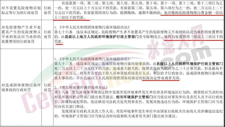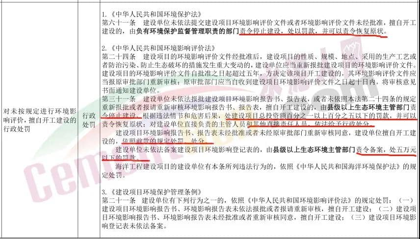 除此之外,文件中涉及到的內(nèi)容還包括對于違法排污,不正當(dāng)方式排放,未按規(guī)定進(jìn)行環(huán)境影響評價,擅自開工建設(shè),不按照國家規(guī)定申報(bào),登記工業(yè)固體廢物等行為,對申請危險廢物出口核準(zhǔn)的單位隱瞞有關(guān)情況或者提供虛假材料,未按照規(guī)定報(bào)告危險化學(xué)品企業(yè)相關(guān)信息,在主要入太湖河道岸線內(nèi)以及岸線周邊、兩側(cè)保護(hù)范圍內(nèi)新建、擴(kuò)建化工、醫(yī)藥生產(chǎn)項(xiàng)目等行為,違反揮發(fā)性有機(jī)物治理相關(guān)規(guī)定等多種行為做出了詳細(xì)的行政處罰,水泥廠如果觸碰到紅線,輕則面臨罰款、停產(chǎn)整改,重則面臨查封,追究刑事責(zé)任。