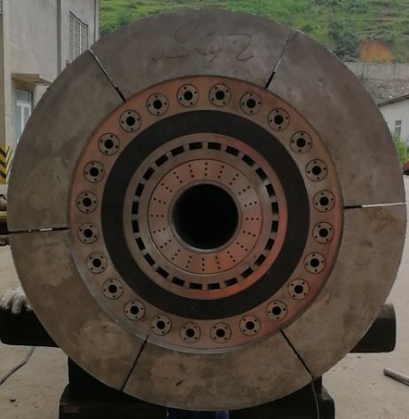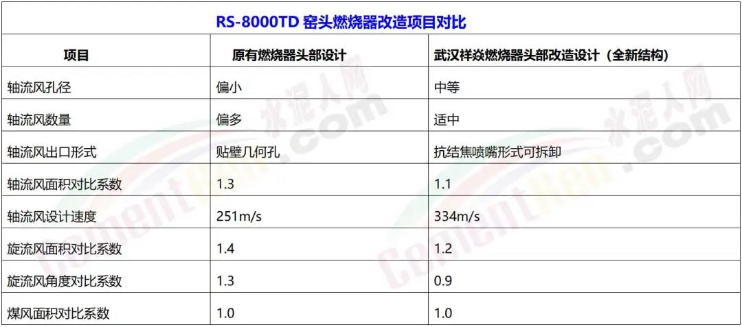 新改造的燃燒器頭部為拉法基歐洲專供機(jī)型,此次定項(xiàng)設(shè)計(jì)RS項(xiàng)目窯頭燃燒器頭部尺寸改造,通過(guò)軸流風(fēng)動(dòng)能增加軸流風(fēng)的推力率,以旋流風(fēng)模式重新設(shè)計(jì)并修正氣動(dòng)角度,燃燒器頭部改造后的直接效果,促使更大范圍的高溫?zé)煔饣亓骷皟?nèi)部氣流的交換速率提升,提高著火能力,強(qiáng)化煅燒,有利于強(qiáng)度,密度,能耗,產(chǎn)量等多方面的優(yōu)化改善,燃燒器頭部結(jié)構(gòu)也得到優(yōu)化大幅延長(zhǎng)使用周期。