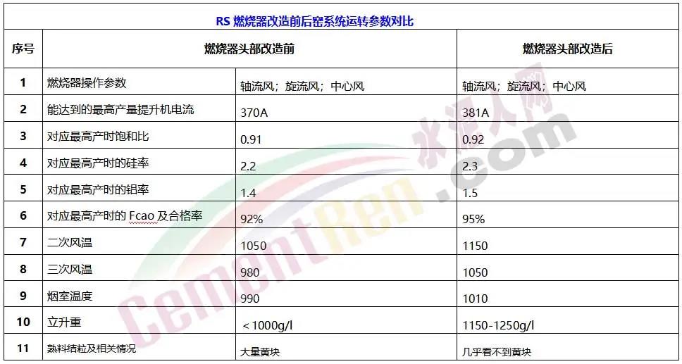 通過(guò)此次燃燒器頭部改造,系統(tǒng)二次風(fēng),三次風(fēng),尾溫,煅燒溫度,均有正向優(yōu)化效果,標(biāo)煤耗降低1kg左右,熟料強(qiáng)度由于煅燒溫度提升的改變,3d,28d,均提升,產(chǎn)量提升,結(jié)粒改善,窯系統(tǒng)趨于正常生產(chǎn)表現(xiàn),此次改造經(jīng)雙方認(rèn)定,改造成功,完成既定目標(biāo)!