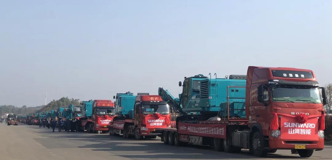 抗疫情同舟共濟,忙生產(chǎn)眾志成城!2020年3月19日,山河工業(yè)城內一片喜慶景象,一大批鑿巖與起重設備正在緊張裝車,作為山河智能3月份新下線的裝備,它們將批量發(fā)車,助力各地工程復工建設。