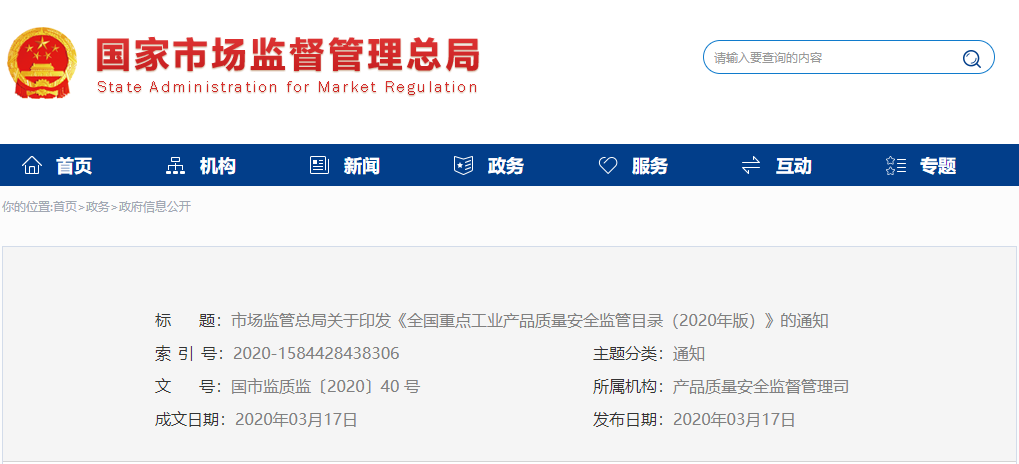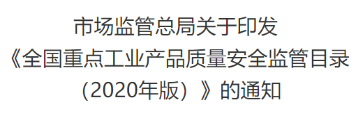 為貫徹落實(shí)《質(zhì)量發(fā)展綱要(2011-2020年)》關(guān)于“制定實(shí)施國家重點(diǎn)監(jiān)管產(chǎn)品目錄”的要求,市場監(jiān)管總局在總結(jié)《全國重點(diǎn)工業(yè)產(chǎn)品質(zhì)量安全監(jiān)管目錄(2019年版)》實(shí)施經(jīng)驗(yàn),綜合分析監(jiān)督抽查、生產(chǎn)許可、風(fēng)險(xiǎn)監(jiān)測、執(zhí)法打假、國內(nèi)召回通報(bào)、網(wǎng)絡(luò)輿情報(bào)道等數(shù)據(jù),并征集相關(guān)單位意見的基礎(chǔ)上,認(rèn)真分析研究防范疫情工作中反映出的新問題,堅(jiān)持問題導(dǎo)向,聚焦監(jiān)督抽查合格率低、各方面反映問題較為突出、涉及重大質(zhì)量安全或國家有關(guān)政策文件要求重點(diǎn)監(jiān)管的工業(yè)產(chǎn)品,制定了《全國重點(diǎn)工業(yè)產(chǎn)品質(zhì)量安全監(jiān)管目錄(2020年版)》(以下簡稱《目錄》)?,F(xiàn)就有關(guān)事項(xiàng)通知如下: