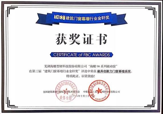 在取得終端客戶認(rèn)可的同時,海螺型材在業(yè)內(nèi)也獲得眾多榮譽(yù)。