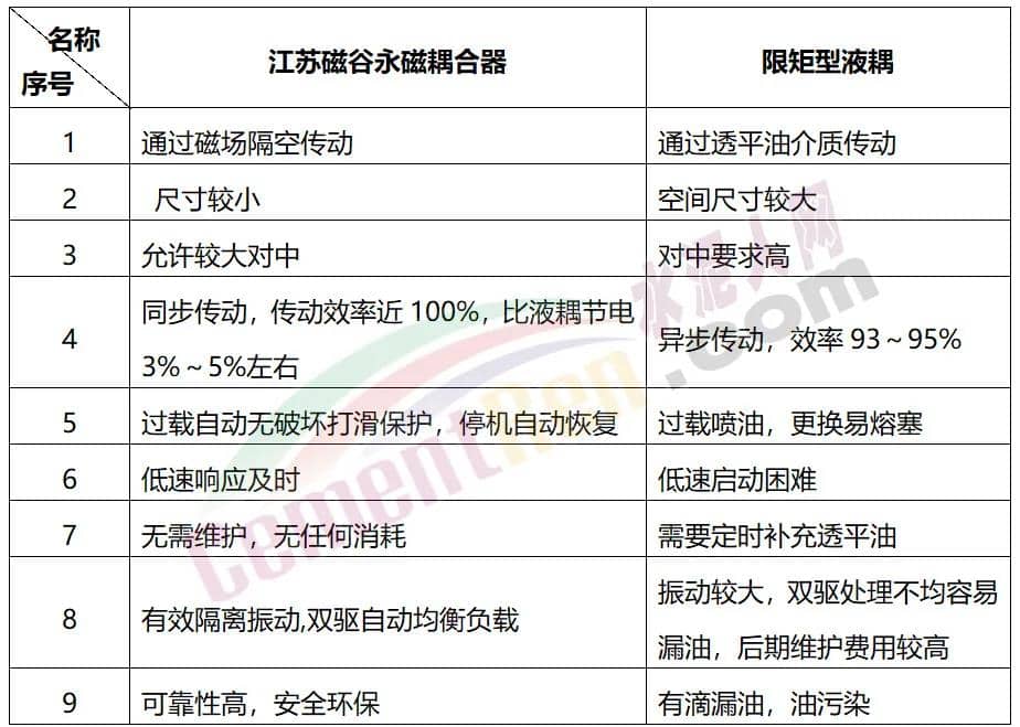 那么對(duì)于水泥企業(yè)來(lái)說(shuō),永磁耦合器和限矩型液耦之間有什么區(qū)別呢?水泥企業(yè)應(yīng)該如何選擇耦合器呢?今天全國(guó)第一家致力于大轉(zhuǎn)矩(1500N·m以上,最大可達(dá)480000N·m)永磁耦合聯(lián)軸(保護(hù))器應(yīng)用研究和開(kāi)發(fā)的企業(yè),江蘇磁谷科技股份有限公司(以下簡(jiǎn)稱(chēng)“江蘇磁谷科技”)對(duì)于兩種耦合器的看法。