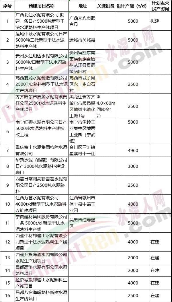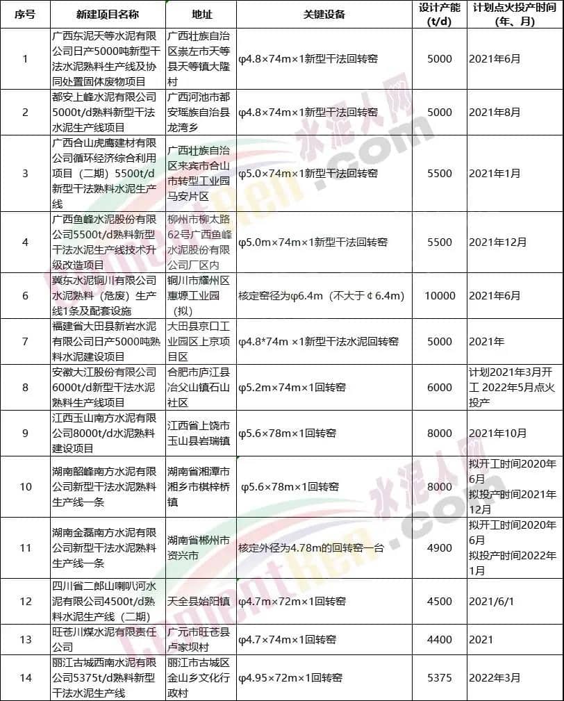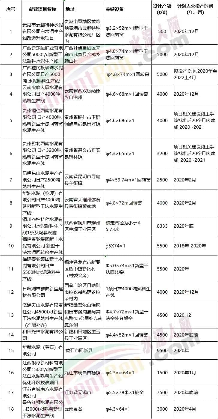 一、2020年準(zhǔn)備投產(chǎn)的產(chǎn)能(18條生產(chǎn)線合計(jì)產(chǎn)能約2460.99萬噸/年)