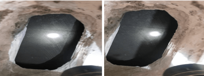 4~5下料管更換微晶高溫耐磨材料,運行半年后觀察下料管內(nèi)部時,幾乎沒有看到結(jié)皮現(xiàn)象。這就大大減少了人工的清理頻次,降低職工勞動強(qiáng)度,減少清理時高溫燙傷的風(fēng)險,詳細(xì)圖片見下圖-4。