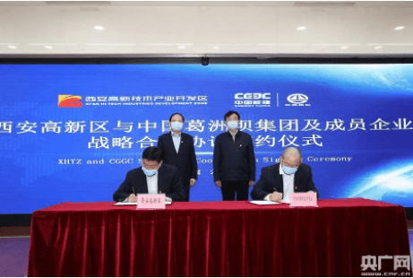 日前,陜西西安高新區(qū)與中國葛洲壩集團及成員企業(yè)戰(zhàn)略合作框架協(xié)議簽約儀式舉行。市委常委、高新區(qū)黨工委書記、航天基地黨工委書記鐘洪江,高新區(qū)黨工委副書記、管委會主任齊海兵,高新區(qū)管委會副主任韓紅麗、顧海文,中國葛洲壩集團股份有限公司黨委書記、董事長陳曉華等出席,見證和簽約投資項目。