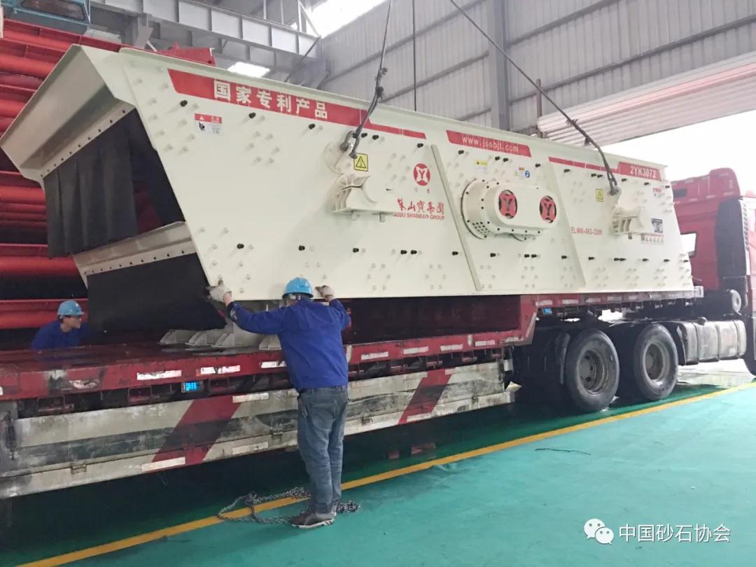 2020年3月26日,江蘇山寶集團(tuán)廠區(qū)內(nèi),工人們正有條不紊地進(jìn)行著YK系列圓振動(dòng)篩的吊裝工作,起吊、平移、穩(wěn)落、固定,每一個(gè)環(huán)節(jié)都認(rèn)真而細(xì)致,確保設(shè)備安全抵達(dá)現(xiàn)場(chǎng),助力全椒海螺水泥骨料篩分項(xiàng)目。