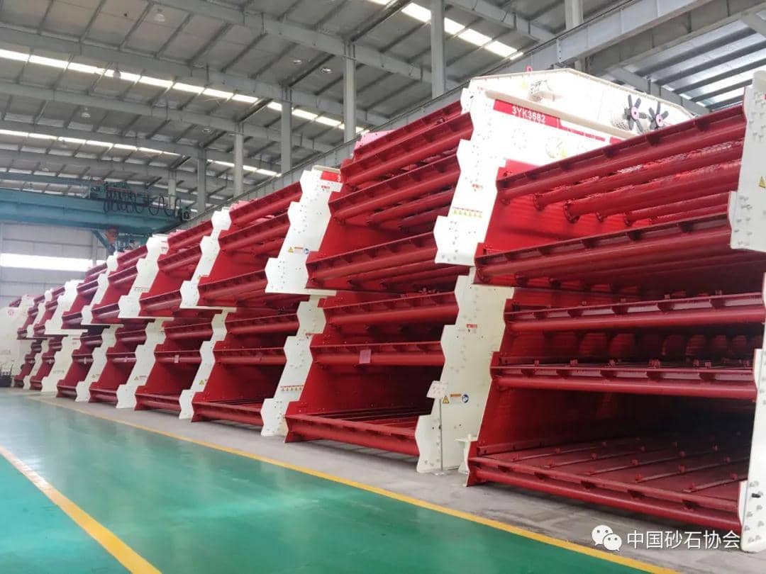 即將發(fā)往各個(gè)客戶現(xiàn)場(chǎng)的振動(dòng)篩整齊列隊(duì)