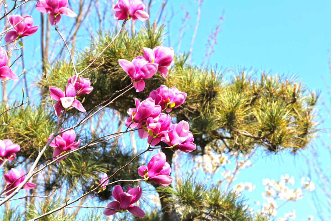 辦公樓前的玉蘭花已綻開,如一個個俏美人,栩栩如生地在風(fēng)中搖曳,美麗清新、綠色盎然,散發(fā)著淡淡的清香,在陽光下朝氣蓬勃、奮發(fā)向上。