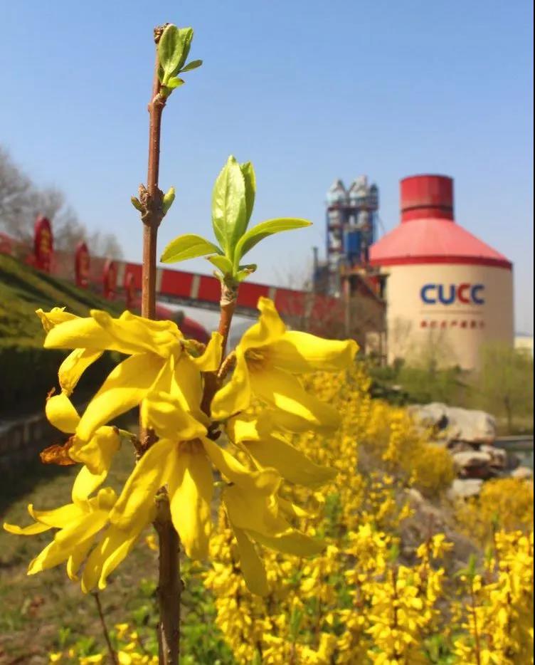 藍(lán)天下的洛陽中聯(lián)空氣清新,微風(fēng)把春意播種在了廠區(qū)的每個角落,一串串嬌黃的連翹仿佛在昭示著早春的美麗,辦公樓前的桂樹,嫩芽在春風(fēng)的撫摸下,努力向外舒展。