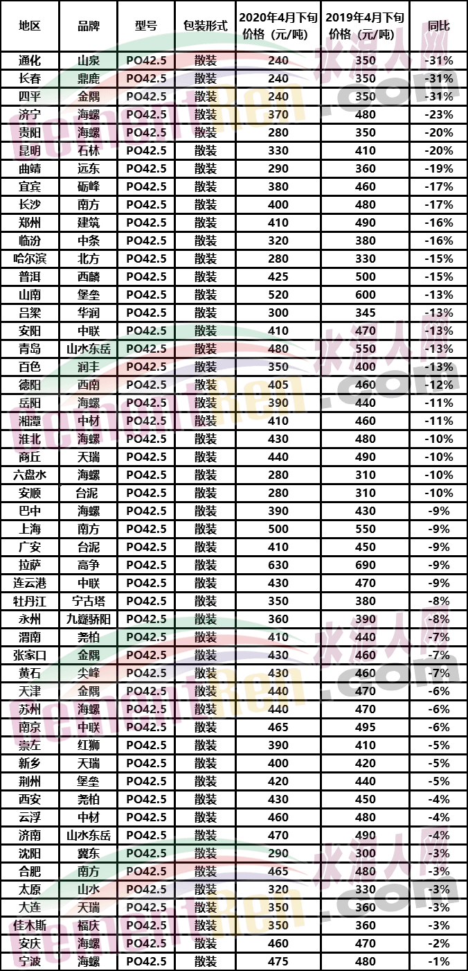 自3月份以來,自西而東、自北而南,全國水泥價格上演一輪又一輪的上漲,這讓很多人產(chǎn)生了錯覺,水泥價格是不是又創(chuàng)造了峰值呢?其實事實并非如此。據(jù)水泥人網(wǎng)信息中心數(shù)據(jù)顯示,截至到4月底,全國50多個地區(qū)水泥價格同比出現(xiàn)了下滑,最大下滑幅度達(dá)31%左右,因此,從目前國內(nèi)水泥價格的發(fā)展來看,部分地區(qū)的水泥價格回升屬于恢復(fù)性上漲。