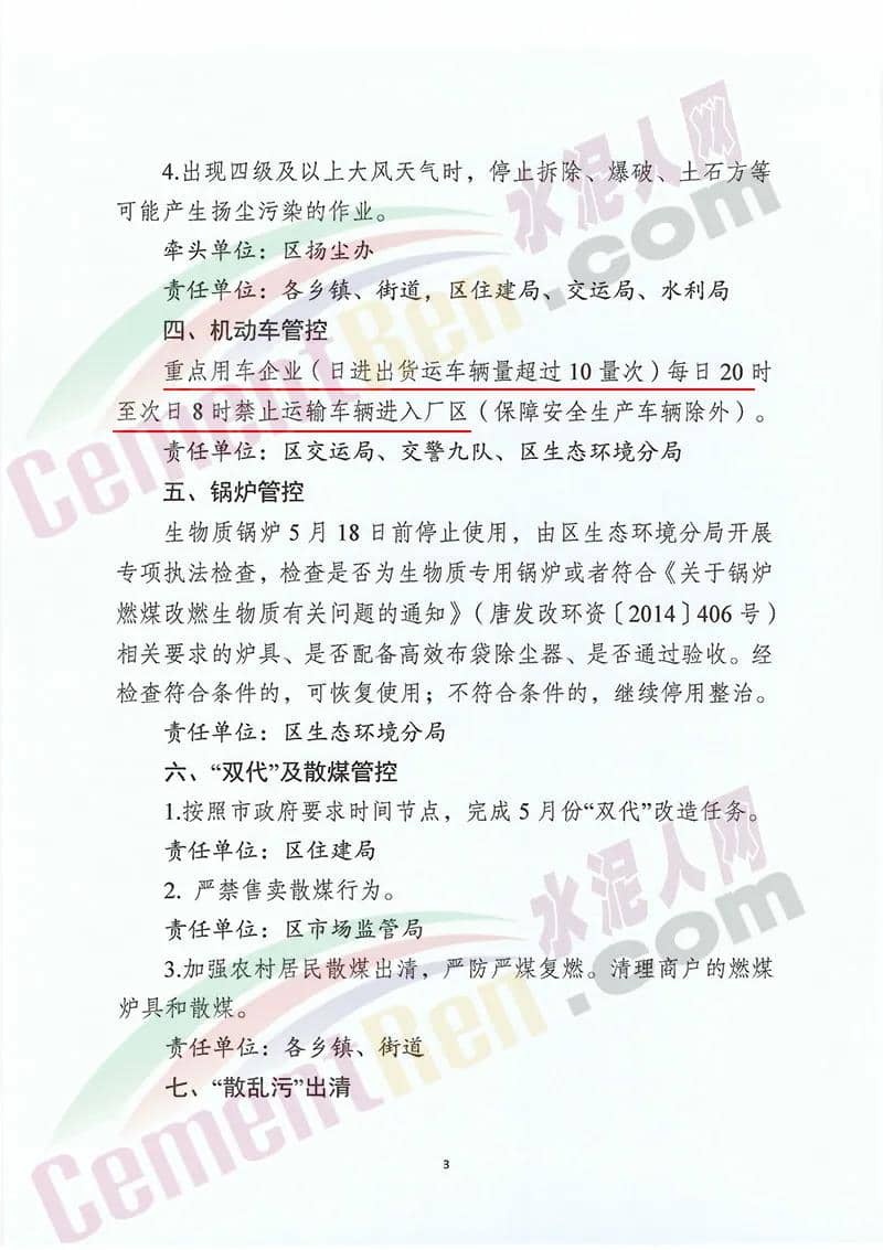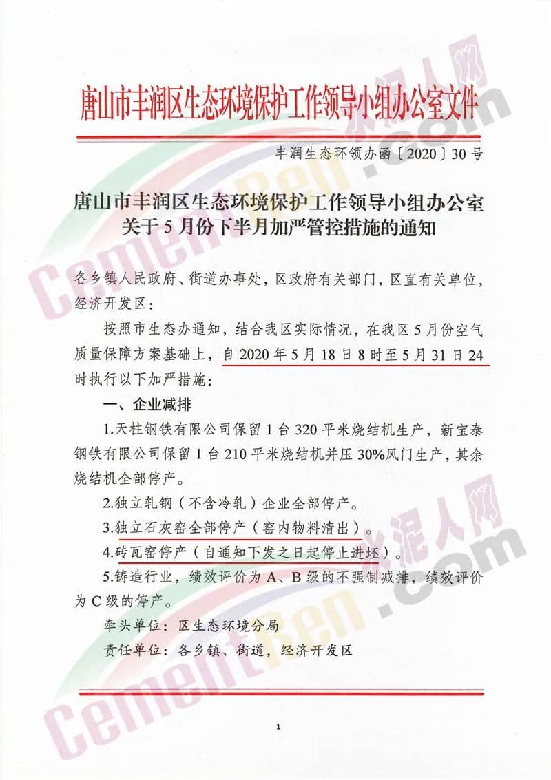 據(jù)水泥人網了解,應此前唐山市豐潤區(qū)生態(tài)環(huán)境保護工作領導小組辦公室文件要求每日20時至次日8時禁止運輸車輛進入廠區(qū)內,并未停發(fā)水泥。部分企業(yè)因庫容量較小,為保供重點客戶對部分經銷商客戶暫停供應。