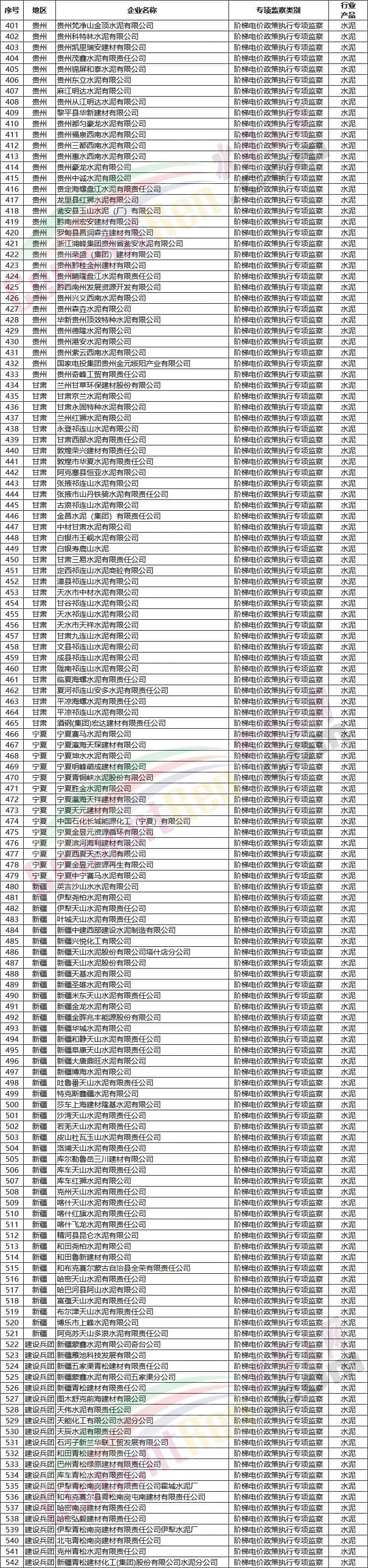 2020年國(guó)家重大工業(yè)專項(xiàng)節(jié)能監(jiān)察企業(yè)名單中階梯電價(jià)政策執(zhí)行專項(xiàng)監(jiān)察的水泥企業(yè)共542家。