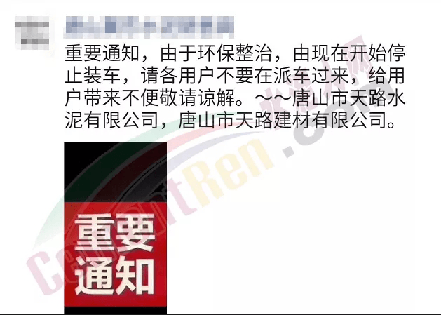 收到上述通知,區(qū)域內(nèi)各水泥企業(yè)陸續(xù)發(fā)出停產(chǎn)、停運(yùn)及暫停裝車的通知,并表示恢復(fù)時(shí)間不確定,將另行通知。